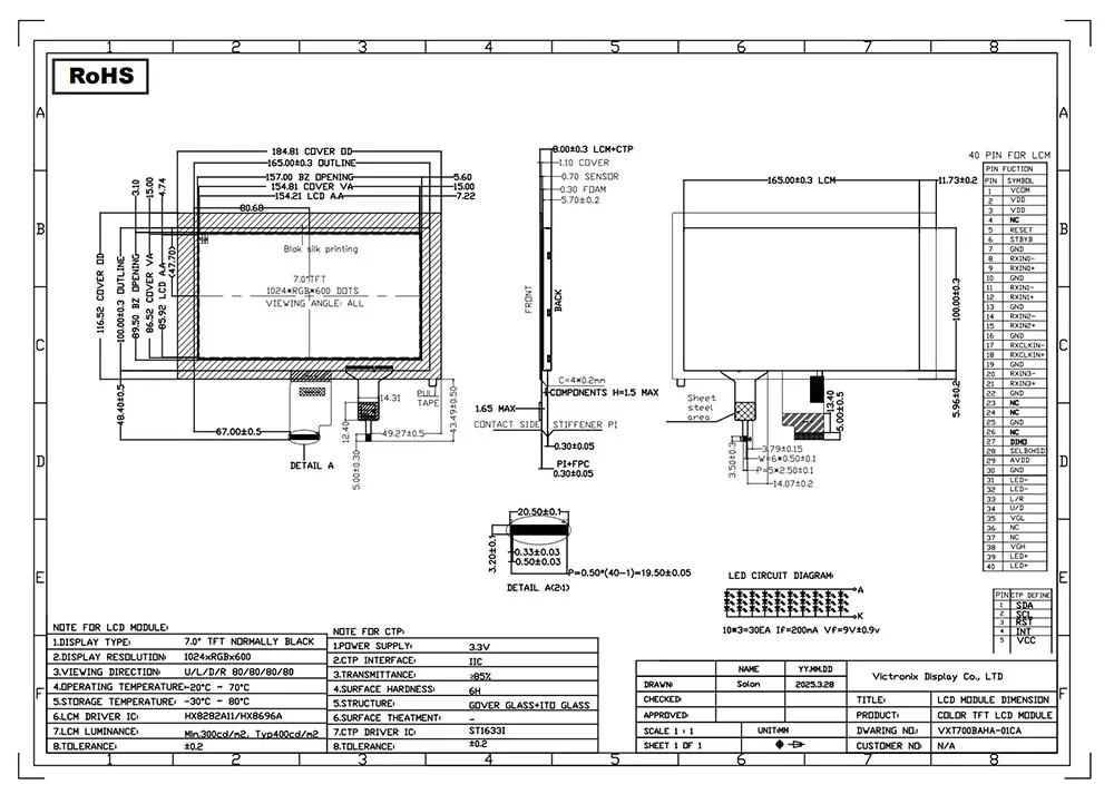 Victronixは、中国に拠点を置くプロのTFTモジュールメーカーおよびサプライヤーです。この分野での18年の経験により、さまざまなモデルを開発しました。標準製品に加えて、お客様の特定のニーズを満たすためのカスタマイズされたサービスも提供しています。このVictronix 7インチ1024×600 LVDS IPS TFT LCDは、ヴィクトニックスが設計した堅牢な7インチTFT LCDモジュールであり、産業、組み込み、および商用アプリケーションを要求しています。鮮やかなビジュアル、レスポンシブタッチ機能、産業用グレードの信頼性を組み合わせて、このモジュールは多様な動作環境で並外れたパフォーマンスを提供します。